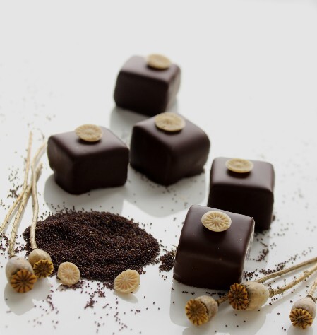 Schnittpralinen aus wildem Mohn oder Blaumohn. Ganz besonders ist die Deko, die von echten Mohnkapseln abgeformt wird. Ich zeige das gesamte Rezept und die Technik der Deko.